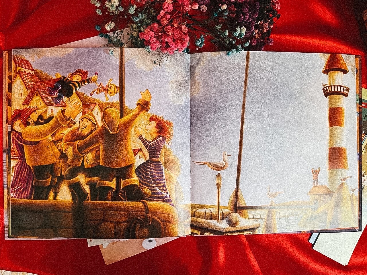 Потрясающая книга! Какие невероятно красочные иллюстрации с добрым, милым и нежным сюжетом, который покорил мое сердце. Книга о настоящих ценностях, о любви, о силе, о жертвенности, о дружбе и надежде. Вернет ли море ее папу, и еще несколько рыбаков, которые вместе с ним отправились в море?