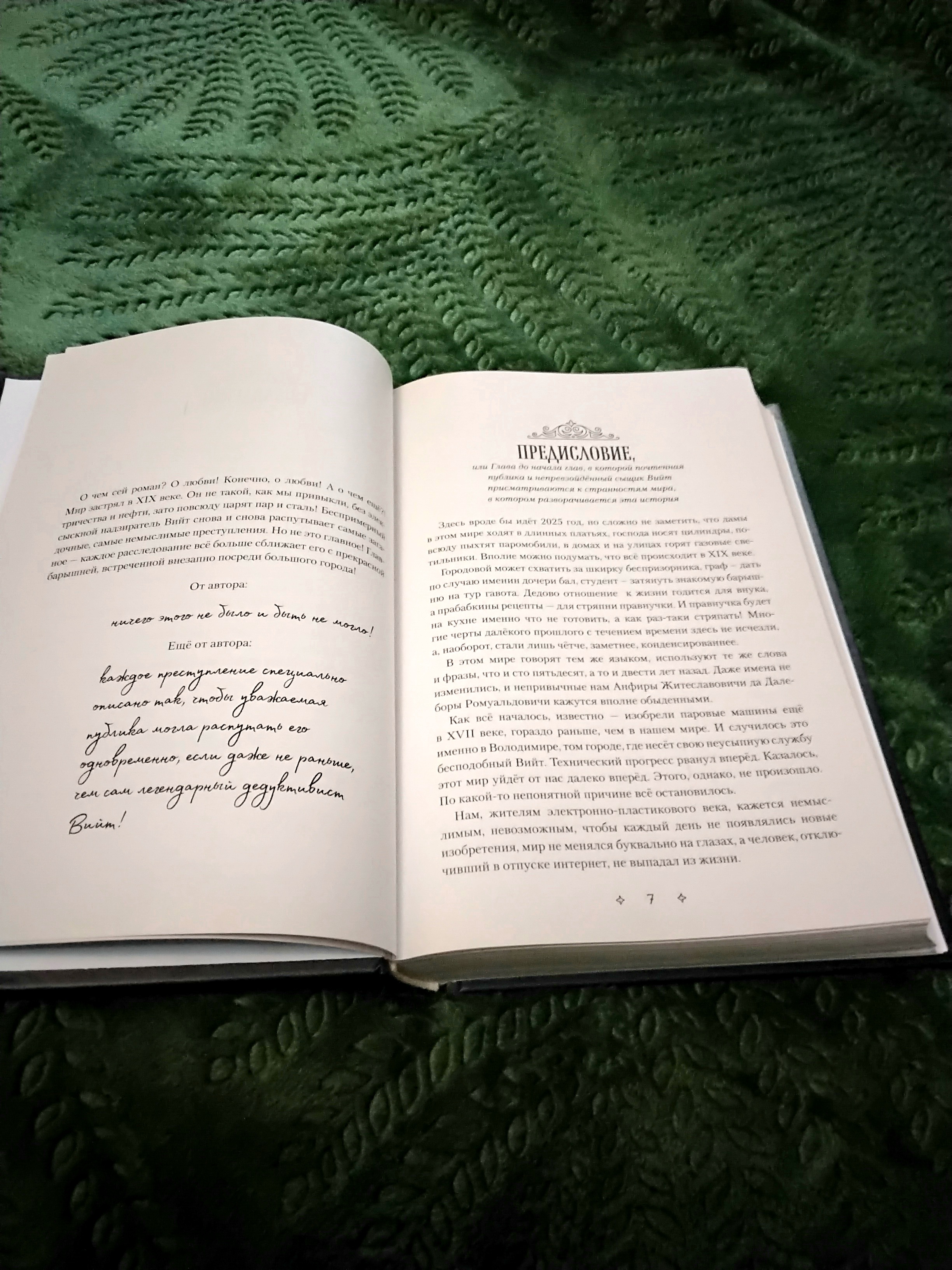 О самой книге. Толстая обложка, полноценных 477 страниц ( к слову бумага приятная и молочная), легко читаемый шрифт, который чередуется с курсивом, чтобы выделить важные моменты. Повествование разделено на 14 глав, которые представляют собой отдельные детективные истории, но объеденные персонажами, местом действия (город Володимир) и все завершается эпилогом - подводящим итоги :) Обложка твердая, на ней изображение из глянцевых и матовых элементов. Красиво одним словом :) А дирижабли!? Боже мой, как же я была рада дирижаблям в этой книге :)