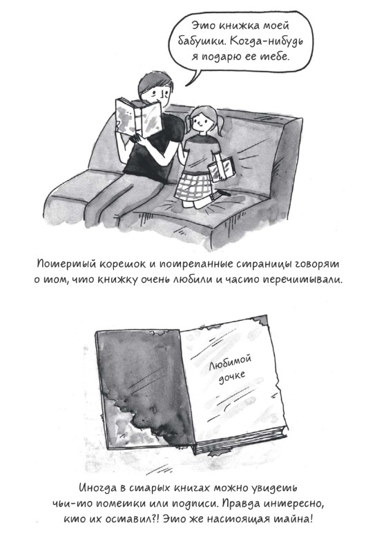 Иллюстрации: а они основа этой книги, как по мне, не очень то и крутые. Во первых они черно белые, а как по мне мир книголюба очень и очень красочный. Во вторых они очень однообразные, иногда только вклиниваются какие то новые персонажи и фоны. Я лично ожидал какого то более глубокого погружения.