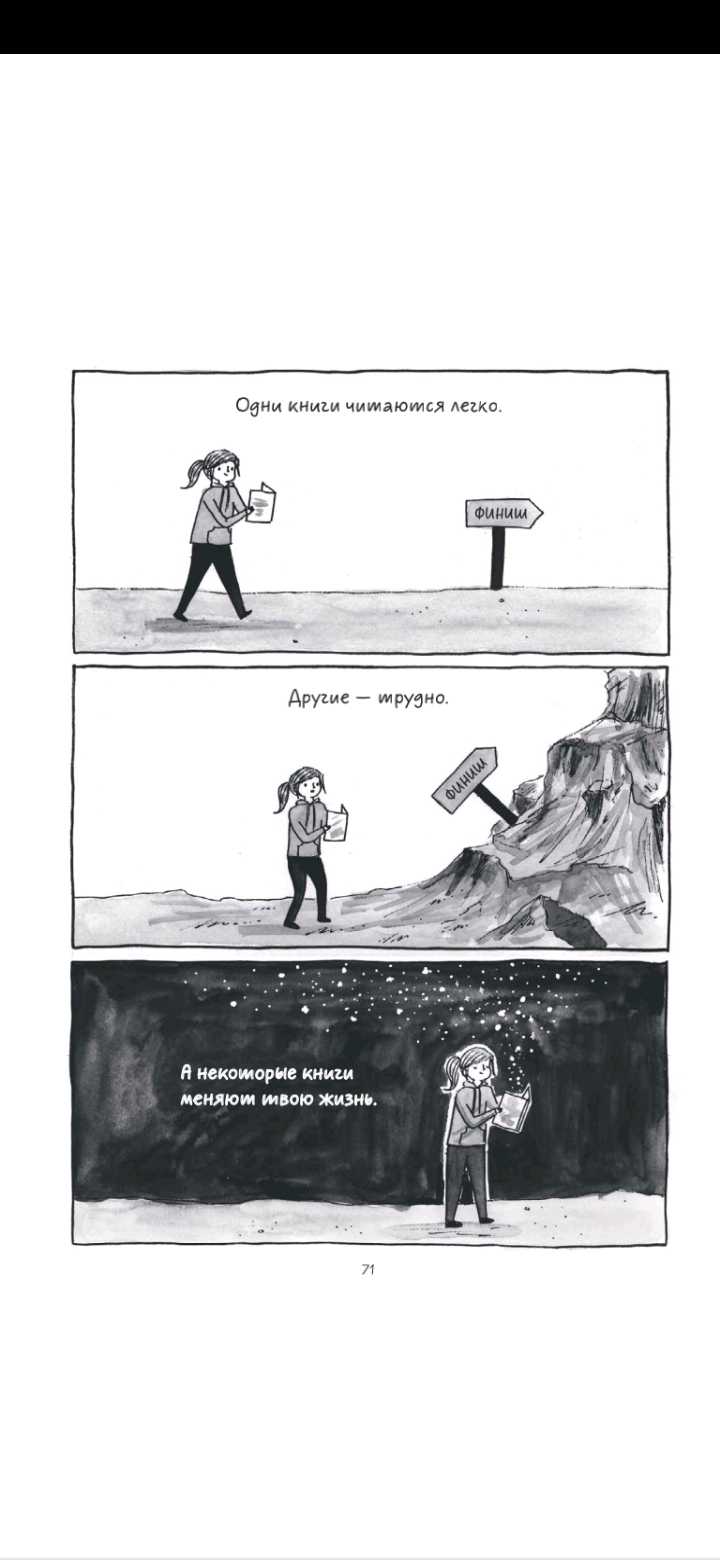 «Книги помогают и в тяжёлые времена, и когда скучно, и когда нужен толковый совет. Книги всегда со мной, даже если никто меня не понимает. Если вы однажды полюбили книги, то это навсегда».безумцамилюбителями книг. Не последнее место в комиксах Дебби занимает её муж: пусть временами его и поражают выходки его жены (чемодан для книг и меня поразил, вау, вот это уровень), он всё равно уважает её выбор и поддерживает её в этом, не насмехаясь и не издеваясь над ней. К счастью, мне тоже в этом плане всегда везло, и пока кто-то в очередной раз пытается укорить меня за то, что я трачу слишком много денег и времени на книги, родные и близкие одаривают меня новенькими книжечками и заводят о них разговоры, зная, как это для меня важно. А для меня это действительно важно. Потому что время идёт, люди покидают нас, мы становимся другими, но то, что дарит нам по-настоящему хорошая книга, остаётся с нами навсегда.41460