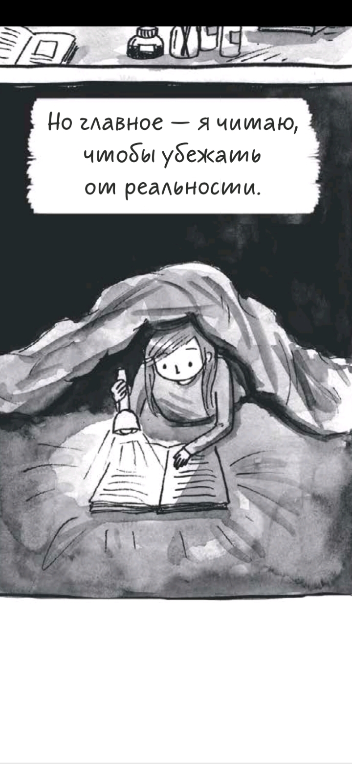 В целом комикс правильный. Героиня ведёт себя как настоящий книголюб. Мне до её уровня расти и расти. Поэтому и не столь яркие эмоции у меня, хотя есть и подходящие ассоциаций со мной. Например,