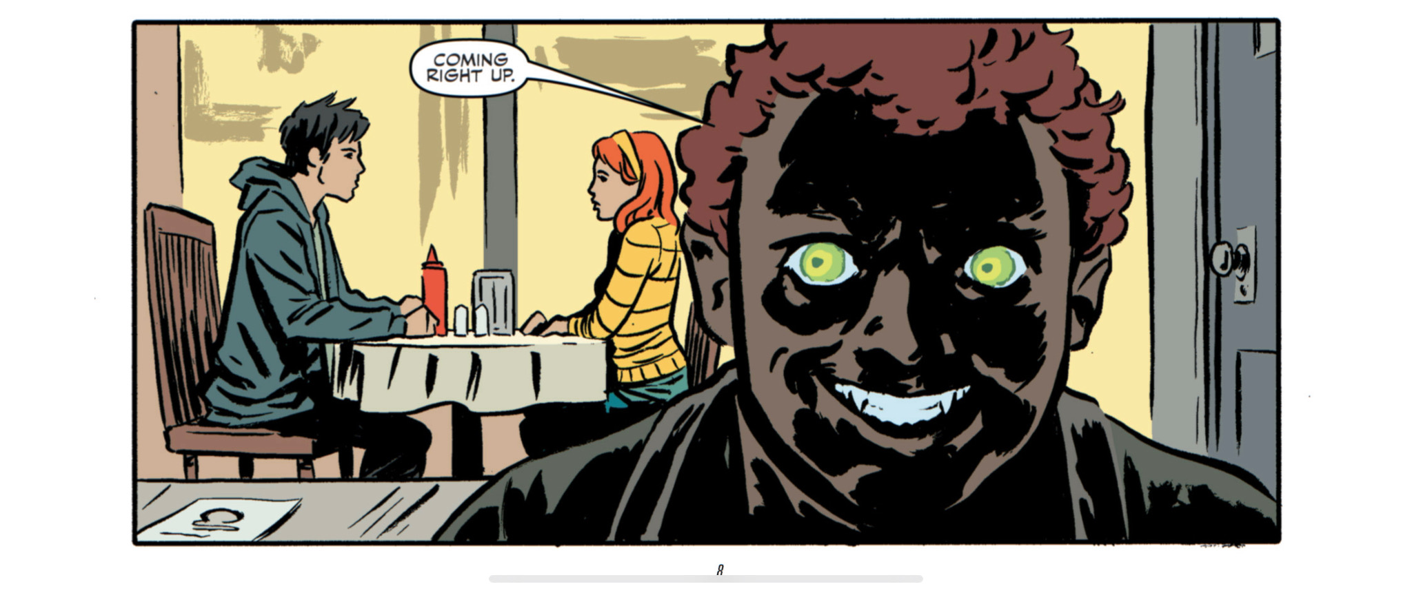 Кстати, из всех вышеуказанных франшиз я более-менее разбираюсь только в "Секретных материалах" — даже сериал про "Одиноких стрелков" до сих пор как следует не посмотрела. Видимо, из-за этого я пропустила какие-то отсылки и потеряла часть удовольствия от чтения. Только номер о "Черепашках-ниндзя" привел меня в полнейший восторг, но не потому, что мне в 8 лет нравился Леонардо. Дело в том, что большую часть того номера занимает интерпретация 12 серии 5 сезона "Материалов", на основе которой я могу запустить свой курс сценарного мастерства. Ее писал Винс "Во все тяжкие" Гиллиган, и она очень смешная! Поэтому этот номер я тоже перечитала два раза, и... не могу вам точно сказать, зачем была нужна в сюжете коммуна вампиров из той серии, кроме того, чтобы порадовать лично меня. Может быть, Крис Картер знает?