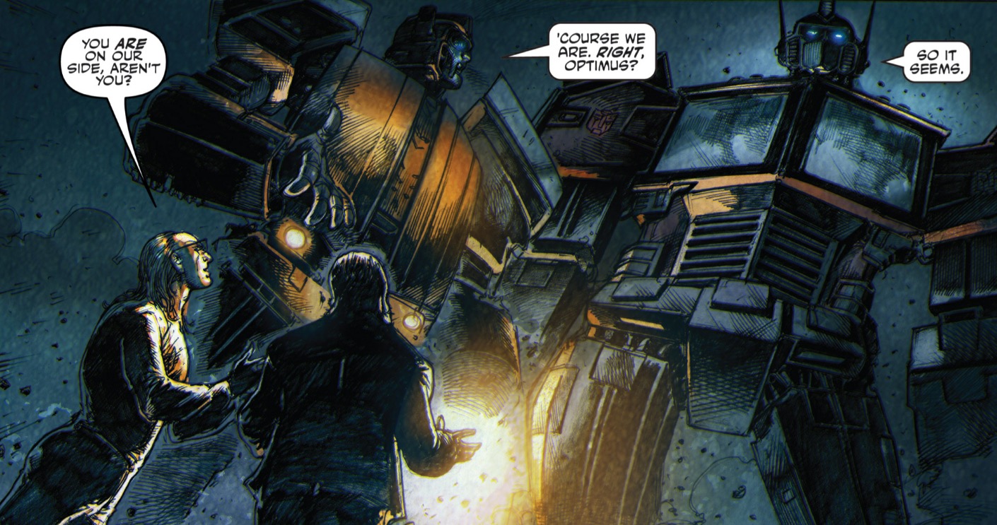 Художники номеров-кроссоверов лучше справились со своей задачей, и красочный выпуск о Трансформерах выглядит просто сногсшибательно. При этом я прочитала его два раза, и все еще понятия не имею, что в нем произошло. Да и вообще вся катавасия с другими комикс-вселенными плохо складывается в цельный сюжет, и иногда спасали лишь краткие аннотации, предваряющие каждый номер. Но! Черепашки! Трансформеры! Где мои 8 лет!