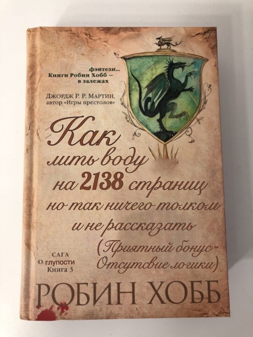 (Сразу хочу пояснить, что я писал отзыв на эмоциях. Я не хотел задеть фанатов цикла. У каждого свои вкусы и предпочтения. Я прекрасно это понимаю, и не умаляю достоинств Робин Хобб.)