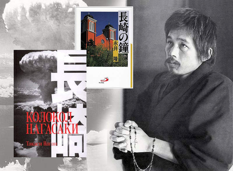 Такаси Нагаи – японский врач, свидетель атомной бомбардировки Нагасаки. Известен как святой из Ураками. В детстве воспитывался согласно конфуцианским и синтоистским традициям. Но смерть матери в 1930 году потрясла Нагаи и привела его к самостоятельным серьезным духовным поискам. В 1932 году он окончил медицинский колледж, но из-за проблем со слухом не был допущен к медицинской практике и стал заниматься исследованиями в области лучевой терапии. В 1933 году был отправлен на фронт в Маньчжурию. По возвращении на родину принял крещение, взял новое имя Павел в честь японца-католика, святого Павла Мики и стал членом Общества святого Венсана де Поля (SSVDP). Посещал на дому бедных пациентов, оказывал им медицинскую, духовную и материальную помощь. После бомбардировки города Нагасаки в апреле 1945 года сутки напролет проводил в отделении лучевой терапии, где подвергся облучению. В июне 1945 года ему был поставлен диагноз лейкемия. Вечером 6 августа того же года, узнав о бомбардировке Хиросимы, принял решение остаться на месте и помогать людям. Во время атомной бомбардировки Нагасаки находился в отделении радиологии больницы Нагасакского медицинского колледжа. Он получил серьезные травмы, но вместе с остальным выжившим персоналом больницы сразу начал оказывать медицинскую помощь жертвам среди гражданского населения. Дом его был разрушен, жена погибла под обломками. В 1947 году вместе с оставшимися в живых детьми и родственниками поселился в маленькой хижине. В этом крошечном домике он провел последние годы жизни, там же был написан и «Колокол Нагасаки». Скончался в 1951 году на территории университета. Ему, как истинному врачу, хотелось, чтобы студенты видели, как умирает больной лейкемией человек, и могли зафиксировать это для науки.