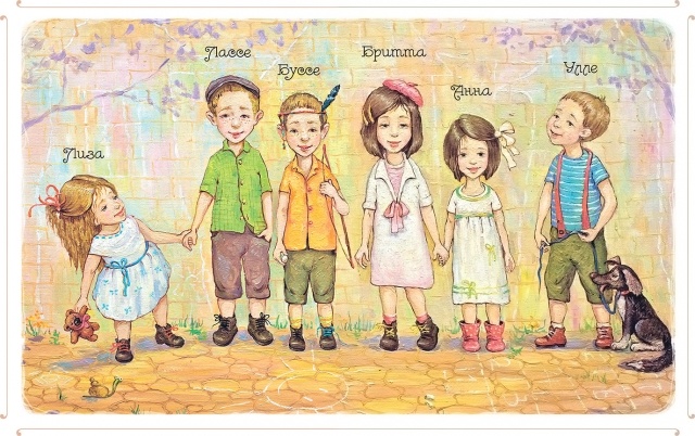 Повествование ведется от лица девочки Лизы. Лассе и Буссе - ее братья. Бритта и Анна - ее подружки, две сестры. А еще есть Улле, у которого затем появляется замечательная обожаемая сестренка. Вот и вся компания. Веселая и неунывающая.