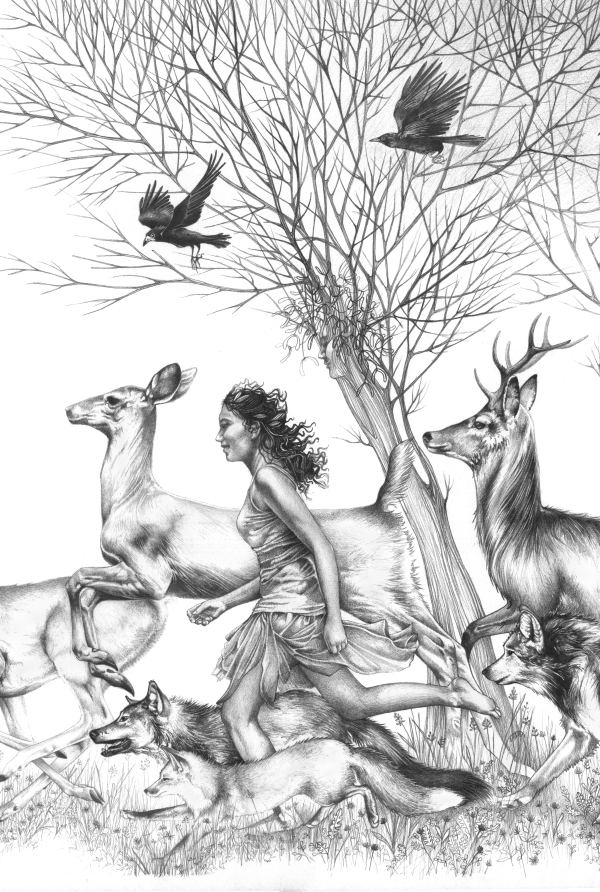 Девушка из странствующего народа, без имени, без дома, без привязанностей. Сегодня она лисица, завтра - косуля или заяц, или мышь. Она может быть всем и ничем,она всюду. Но пока свободна. Пока не приручена.
