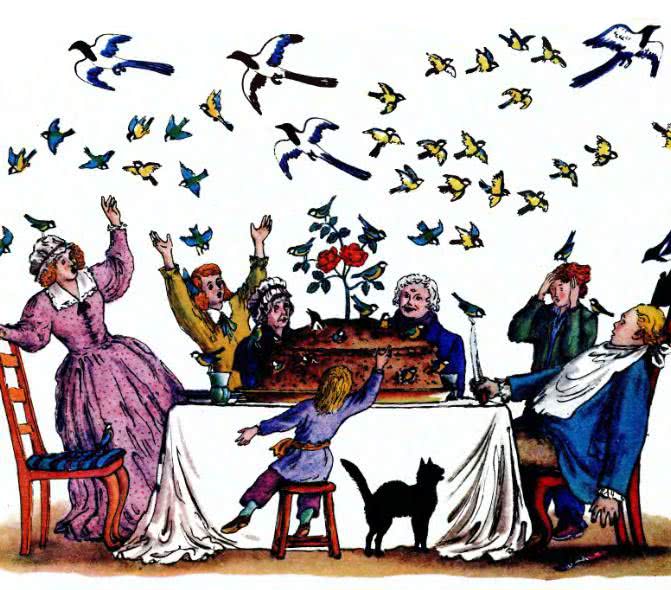 Спросите, как же так переводчики мало того, спутали сорок с дроздами, но и с количеством ошиблись. Оставить панику на палубе. Все дело, в том, что переводчики взяли за основу стихи Маршака, который переводил Льюиса Кэрролла и английские песенки, и сказки. А переводил он в своей манере адаптировал к русскому языку и такту и звучанию.