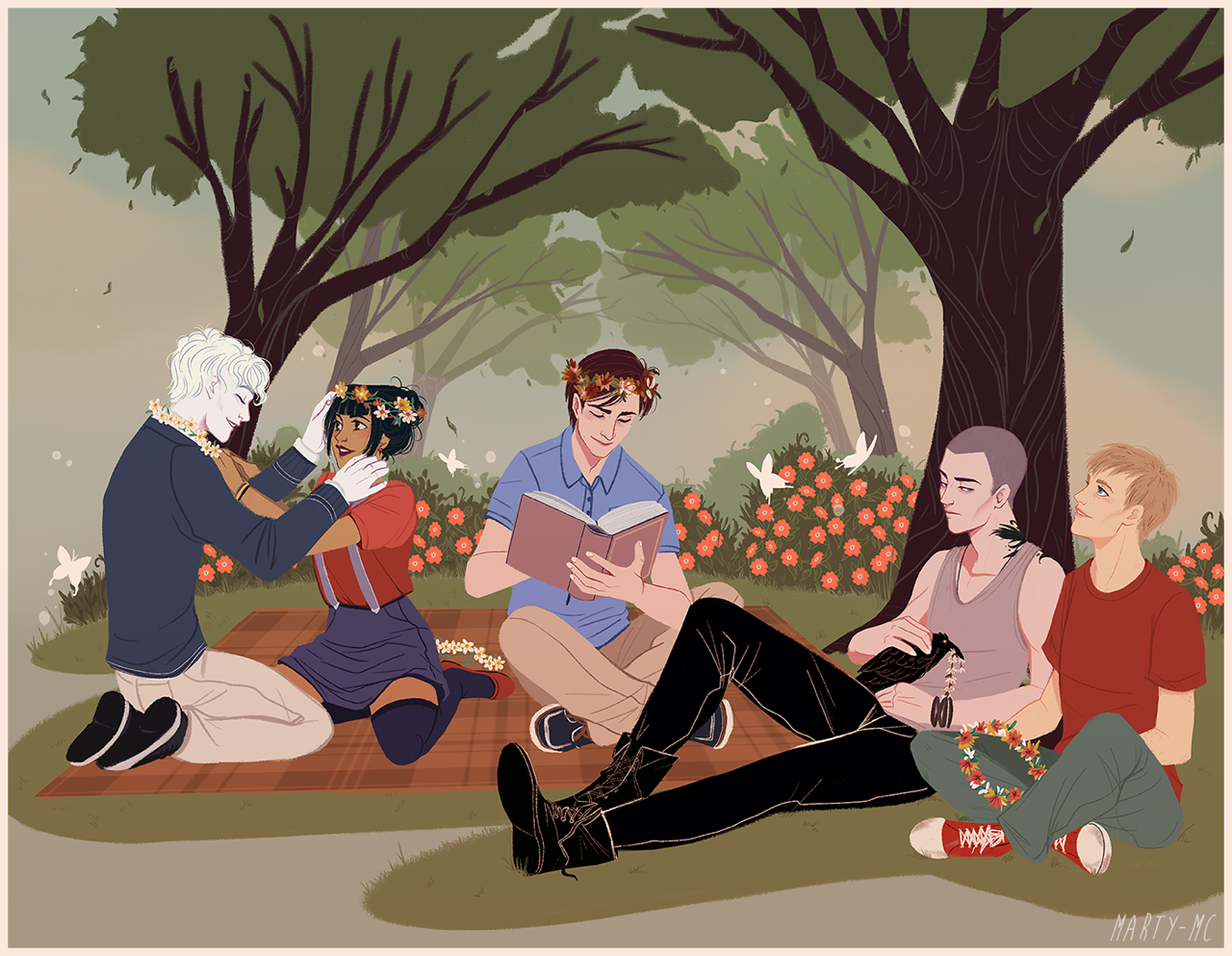 (с) ibuzooМне не хватило страниц о прекрасном призрачном парне. Но те главы, что все же были даны, одновременно страшны и прекрасны. Большое спасибо Мегги за речь от лица старшей сестры Ноа Адель, поведавшей нам о его прошлом, о том, каким же он был творческим, юморным и живым. Гребаный Уэлк заслуживает миллиона смертей за убийство Черни. В этой серии даже антагонисты не представляют собой чистое зло, но, видимо, Уэлк исключение. Хорошего в нем ноль. Только глупость, жадность и трусость. Не понимаю, как Ноа связался с такой скотиной.