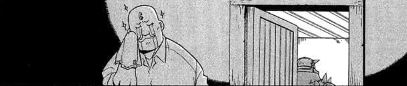 Еще мы (но не герои) узнаем, что Шрам и странные существа, Похоть, Обжорство и прочие, не друзья. Посмотрим, к чему это приведет в будущем.Также в этом томе одна из наиболее спокойных глав, где мы узнаем о "семье" братьев. Конечно, родных у них не осталось, но бабушка-соседка, знающая Элриков с самого детства, и ее внучка Уинри не только всегда рады принять у себя старых друзей, но и являются замечательными механиками-протезистами, что для полумеханического Эда очень полезно (для бабушки с внучкой тоже полезно, ведь они не на благотворительных началах создают и ремонтируют столь искусные автопротезы).