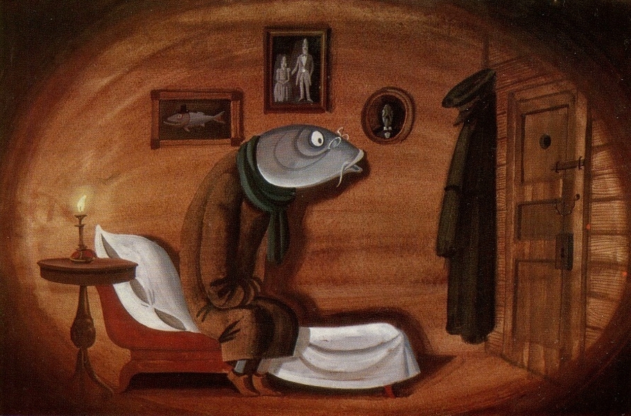 Супертрусливый пескарь, который прожил всю жизнь в яме, в темноте, без друзей и семьи. Он очень неуверен в себе, не способен жить на полную катушку. Окружающий мир вызывает у него панический страх. Просидел всю жизнь в своей ямке, спрятавшись от действительности. Обратите внимание, что в мечтах и во снах он видел себя большим и грозным, которого все боятся. А в реале его ожидала жалкая участь.
