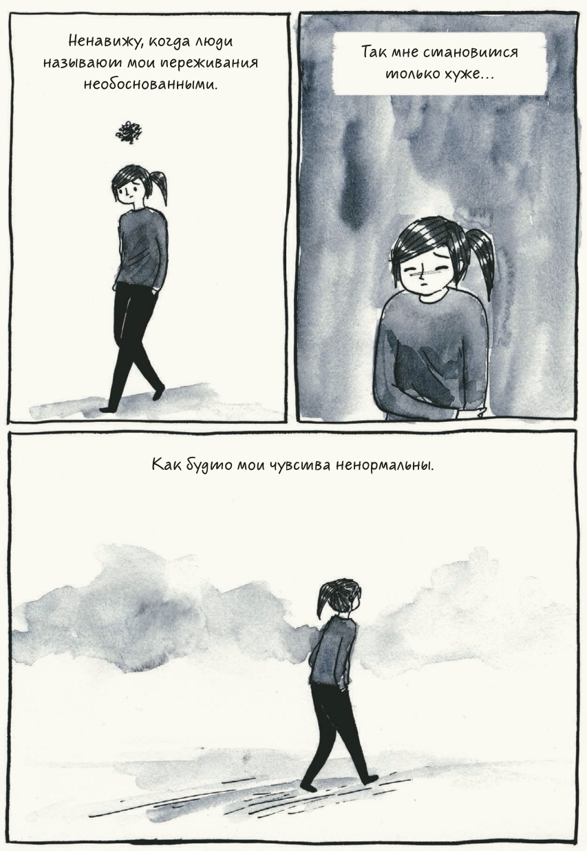 «В любви к себе есть кое-что очень воодушевляющее. Глубокое понимание себя и принятие того, кем ты являешься, равно как и того, кем ты не являешься, – это может изменить твою жизнь и дать удивительную свободу».Читать далееПорой любить себя бывает очень сложно. Даже если тебя устраивает то, кем ты являешься, обязательно найдётся кто-нибудь, кому определённые черты твоего характера не придутся по душе, и он, естественно, посчитает нужным высказать своё мнение, тем самым заставив тебя чувствовать себя неловко. «Почему ты молчишь? Почему ты такая стеснительная? С тобой что-то не так?». Я молчу, потому что хочу молчать. Нет, я не стеснительная, просто я такая. Со мной всё в порядке. О-о-о, то, с чем постоянно сталкивалась героиня комикса, мне было так хорошо знакомо, что я не переставала смеяться, хотя смешного-то, если честно, мало, если вспомнить, сколько раз люди озабоченно вопрошали, почему я постоянно сижу дома/выгляжу грустной/молчу. Хм. Может, потому что я такая, какая есть?