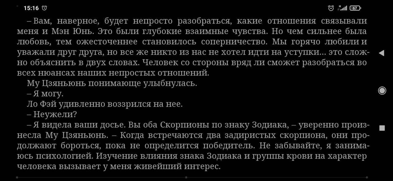 Понравилась история. Динамичная, запутанная, были мысли по поводу личности убийцы, но так и не смогла определить кто это, только когда автор совсем подвёл к развязке, стало понятно что к чему. Точно буду читать остальные две части, интересно что же там будет дальше и куда история вырулит в последующем. Радует, что с китайскими детективами, складываются довольно таки неплохие отношения, нужно присмотреться и к другим авторам.