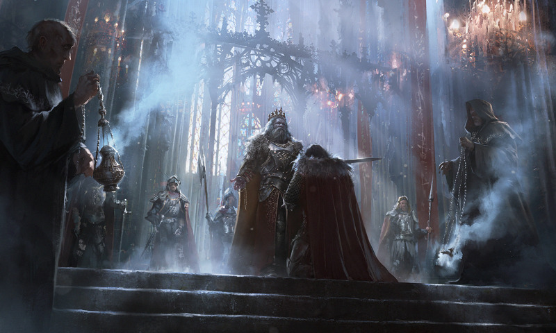 Тема мифов и легенд о древних временах мне всегда нравилась, особенно если в них присутствует острая специя в виде чего-то тайного, не для общей истории знания. Орден тамплиеров, Италия с чумными докторами и святая инквизиция, заговоры Ватикана, а такие безусловно были, а может есть и сейчас, ибо столько материала написано и снято затронувшего эту тему не может быть выдумано и взято из воздуха, во всяком случае в это хочется верить... Хотя, что это я пишу такое, между выбором верить или нет в то, что чума скосила когда-то буквально всю Европу - отдам предпочтение и желание не поверить, но увы.Роман начинается для читателя не просто. Откровенно говоря, дело в действующих лицах. Корнуэлл обрушивает их на тебя пачками. Джордж Мартин отдыхает. Почему? Потому что у Мартина героев много, но он даёт время останавливаясь на каком-то одном, чтобы персонаж запомнился и устаканился в воображении читателя. Корнуэлл же не гнушается вводить их в один абзац по 6-7 штук и это при том, что для них пока нет описания и запихнуть их в воображение или память достаточно тяжко. Очень тяжко было и мне, человеку, который без блокнотика запомнил имена всех действующих лиц цикла ПЛИО, когда читал (а сейчас уже забыл). Поэтому и только поэтому я склоняюсь к варианту незамедлительно перейти ко второму тому, пока память ещё свежа. Но в тоже время хочется прочесть что-нибудь простое, чтобы отдохнуть от жестокости и моря крови.