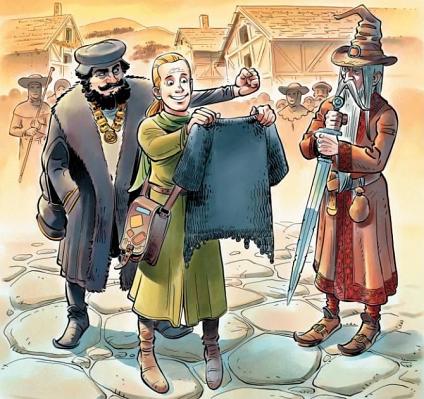 – Во такая! – простодушно показал корчмарь, во всю ширь распахнув руки. Градоправитель сделал ему страшные глаза. Корчмарь торопливо «урезал леща».Экипировали его и отправили в замок.