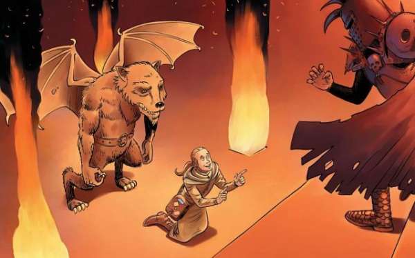 Открывает Демон- с волчьей головой. Рычит на всех, кто не убегает, того проводят по разным страшным залам. А в Финале босс локации. Эффектное появление, на драконе. А потом всё.