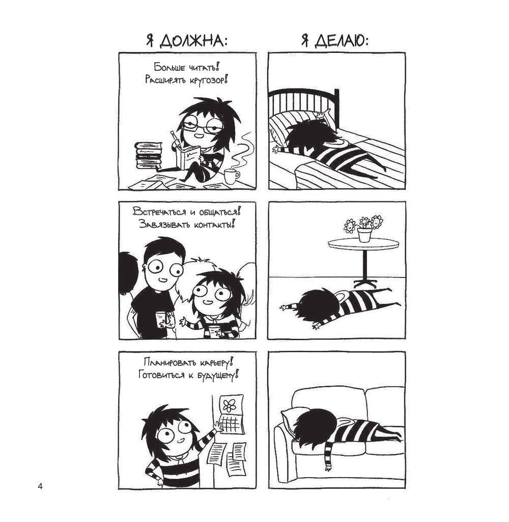 В этом сборнике помимо комиксов есть ещё небольшие комментарии Сары о себе, пояснительная записка, так сказать, и от этого понимаешь ее ещё больше, ведь она такой же человек как и все, со своими радостями, страхами, сомнениями и американскими горками самооценки)16477