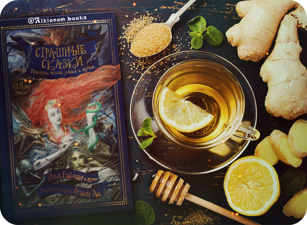 В моей личной коллекции уже есть несколько книг со страшными сказками: "Мать извела меня, папа сожрал меня", "С точки зрения тролля", а так же несколько сборников рассказов Нила Геймана, который тоже любит по-новому взглянуть на старинные предания и сказочные истории. Этот же сборник я купила совершенно неожиданно, увидев его в книжном магазине. Он лежал на самом видном месте, среди новинок, и сразу же бросался в глаза. Безумно красивая обложка, иллюстрации Алана Ли и имя Нила Геймана золотыми буквами - как тут устоишь? И вот книжка плавно перекочевала из магазина ко мне домой.