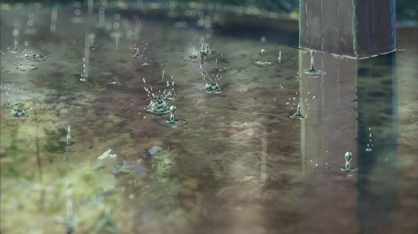 И если говорить про автора, то самое важное в его работах, не только ранобэ и манге, не только в анимэ то, что вас окружает. Детали, цвет, свет, звук, которые создают окружающую атмосферу. В данном же случае это звук капель дождя, воздух наполненный ароматом зелени и озона. Просто взгляните на эту красоту: