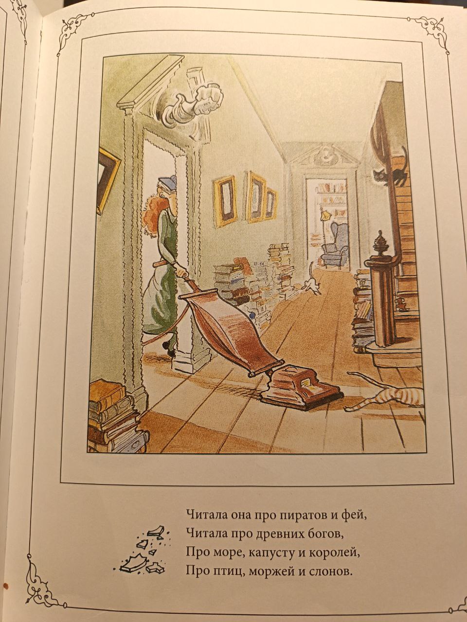 Ну и отдельная любовь — иллюстрации Дэвида Смолла. Каждую страницу разглядываешь и разглядываешь. Мне это напомнило сказку на открытках, которую в детстве мне отдала бабушка. Вот эта книга вполне могла бы стать такой сказкой. Каждая иллюстрация — открытка со своим книжным сюжетом.