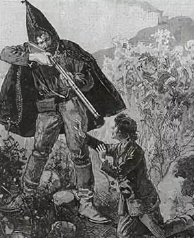 Сделка совершена, беглеца вяжут, и тут отец появляется на горизонте, да с двумя ружьями, видит сержанта, кстати, приходящегося ему родственником, и крадётся к дому с пальцем на курке.