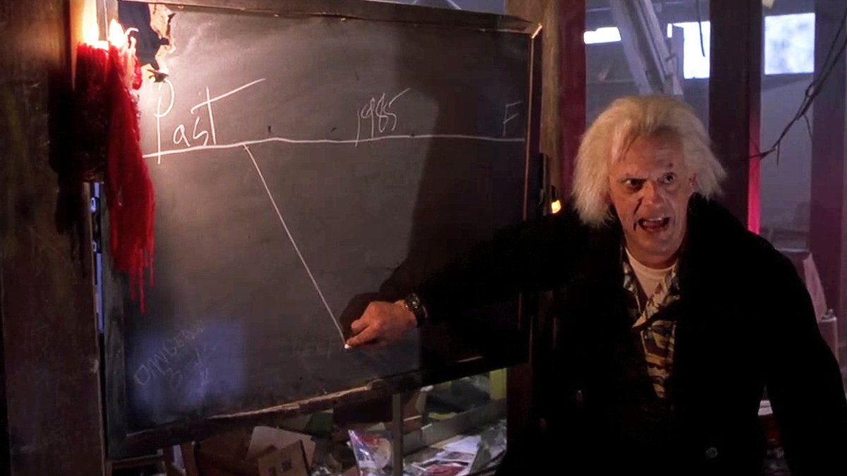 Потом вот, мы видим, как он старается понять эту теорию по времени, узнаем, что ученый, который её придумал, вернулся, и не убил свою жену, и тем самым выпал из этой реальности, и создал новую, где он живет вместе со своей женой. Или хотя бы не убивал её.