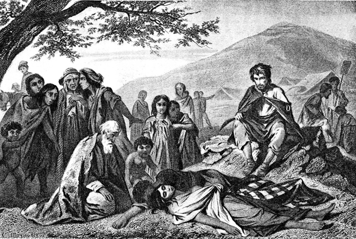 Цыгане изгоняют Алеко из табора,чьим законам он не захотел подчиниться.