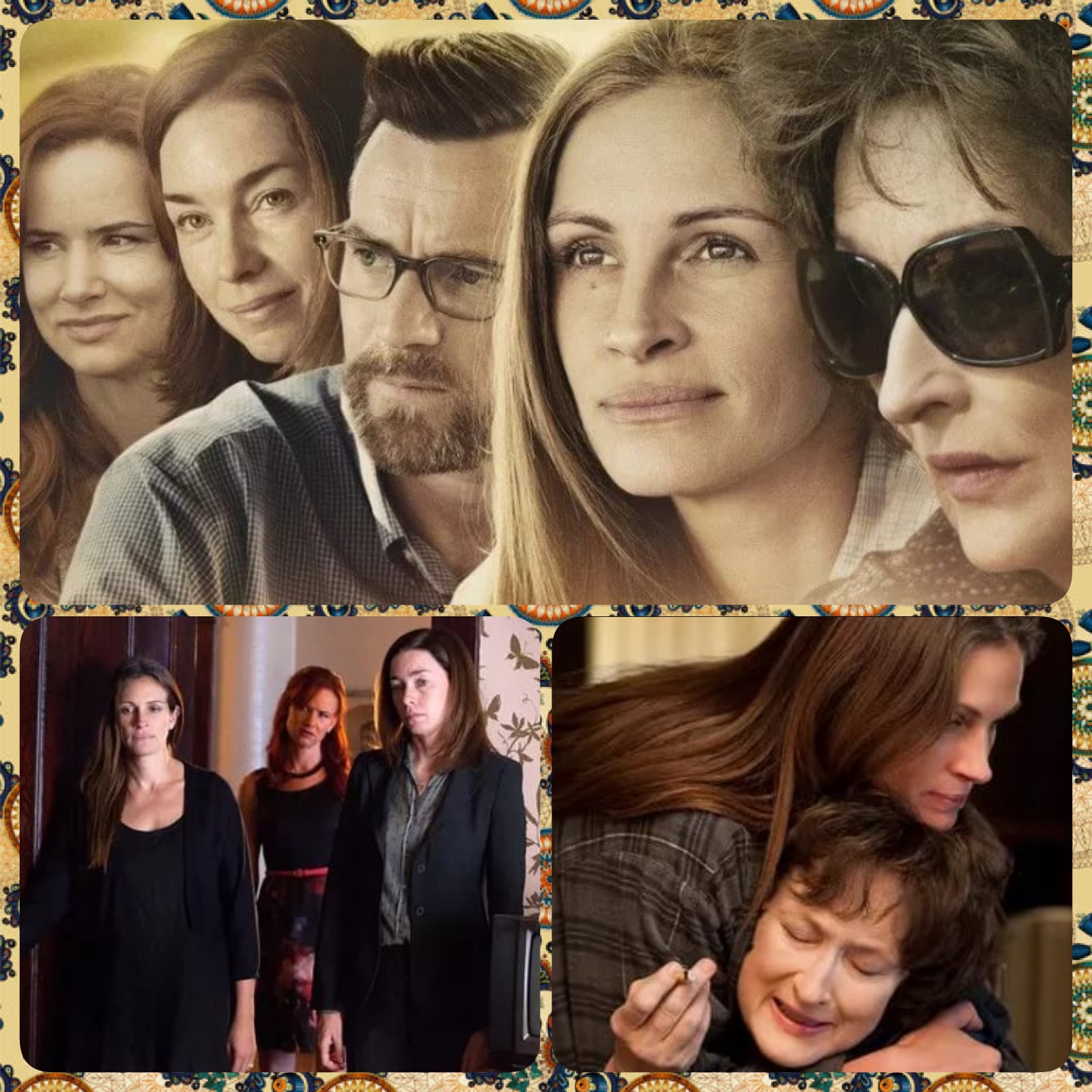 В семье пропал отец и начались его так называемые поиски, а точнее все семейство собралось под одной крышей для того чтобы поддержать Вайолет.У Вайолет есть зависимостьот таблеток, хотя она их принимает из-за рака горла, но постепенно это вошло в привычку и сейчас она просто наркоманка. У нее есть три дочери. У каждой свои проблемы, а вообще они мне напомнили персонажей из сказки: Старший умный был детина, Средний сын и так и сяк, Младший вовсе был дурак. Может и не уместно такое сравнение, но, увы, именно это и приходит на ум. Барбара – сильная женщина, у которой сложный и властный характер. Айви – загнанный зверек. Не умеет противостоять напору матери, но в конце концов она делает рывок. Карен – раздолбайка.