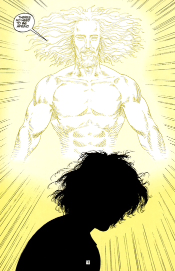 Здесь больше кровищи и богохульства, чем в любом обозримом мейстримовом комиксе. (Entertaiment Weekly)Читать далееК сожалению, кроме кровищи и богохульства, здесь почти ничего и нет. Создается впечатление, что авторы так и застряли в подростковом возрасте. Что им доставляет удовольствие рисовать шокирующий контент и нецензурные реплики - типа, как на заборе, только круче. А вот всё, что касается богоборчества - наивно и примитивно, особенно во второй арке, где нам рассказывают о трудном детстве героя. Штампик плюс штампик... плюс штампик, козлоногие черти и Господь бог как сбежавший воспитатель детского сада. Простите, о свободе воли не слышали? А о механицизме как философской концепции?