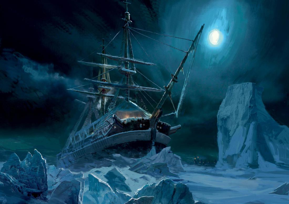 Многие знают, что роман основан на реальных событиях, ведь каждая обложка всех изданий Террора кричит об этом, чтобы завлечь читателя. Но сразу вас предупрежу – сюжет в романе не самое главное. Более того, автор даже сумел сохранить интригу. Теперь к реальности. Экспедиция сэра Джона Франклина направилась на поиски Северо-Западного прохода в части Канадского архипелага в 1845 году, который позволил бы проходить кораблям по наикратчайшему пути между Атлантическим и Тихим океанами на двух ультрасовременных для того времени кораблях – Террор и Эребус, что переводится с языка мифологии, соответственно, как Ужас и Мрак. Корабли имели на своем борту печи, новомодные для того времени консервы (несколько десятилетий назад эти самые консервы и родились в Наполеоновских войнах), кучу провианта, угля, рома и крепкую защиту корпуса, чтобы лед не пробил обшивку кораблей. Естественно, экспедиция пошла крахом, корабли застряли в паковых (многолетних) льдах на пару лет. Вот с этого момента и начинается повествование в книге.