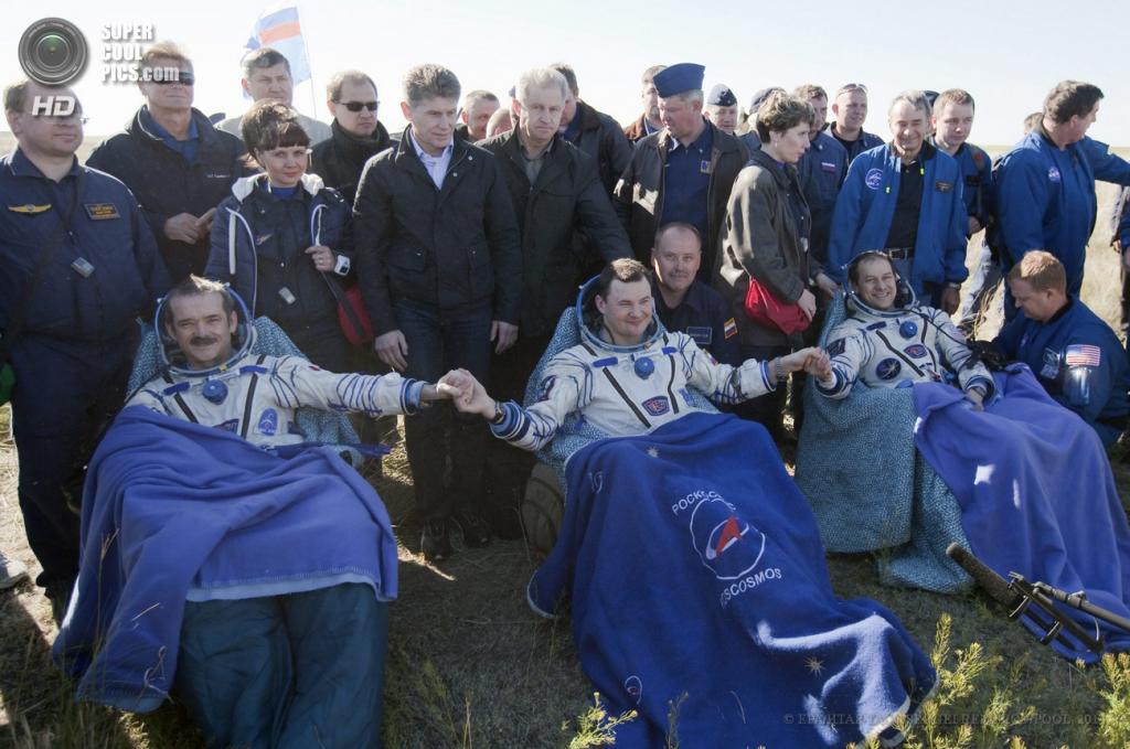 Я больше никогда не вернусь на МКС, но это ничего. Ведь дом для каждого, кого я люблю, – это Земля.На фото: Кристофер Хэдфилд, Роман Романенко и Томас Маршбёрн (слева направо) после приземления. Казахстан, Карагандинская область, 14 мая 2013 г. (источник фото здесь)
