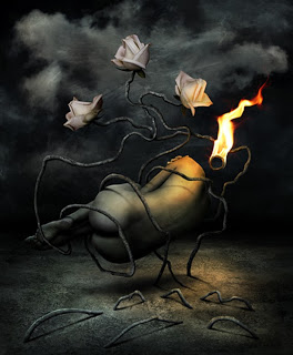 Что-то сквозится, как при проявке фотографии... вот очертилось нежное лицо какой-то нездешней мелодии, оно похоже на... мы мучительно припоминаем на что оно похоже, мы вот-вот вспомним что-то самое главное, светлое... но вот, лицо мелодии трагически темнеет и мы в ужасе отшатываемся от страниц на наших ладонях, ибо на них проступил лик безумия мира, на наших ладонях расцвела тёмная мелодия трагизма самой жизни.