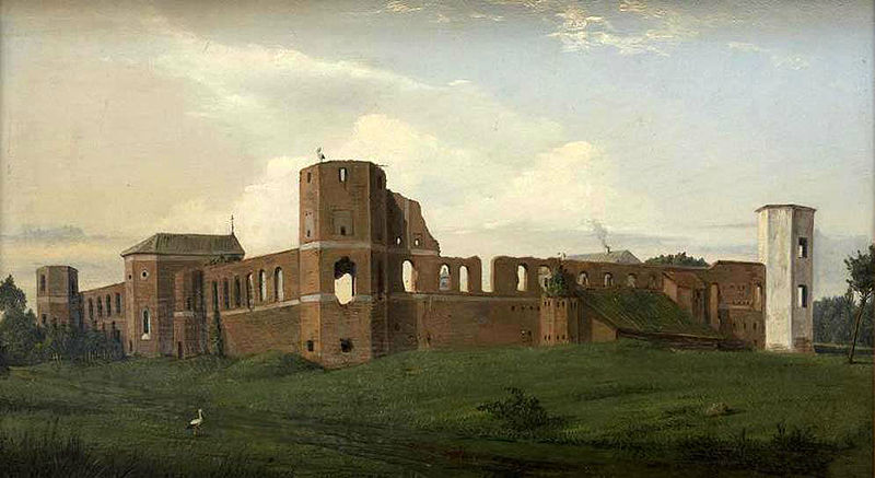 "— Этот замок — обычный дворцово-замковый ансамбль. <...> Местный валунный гранит, багрово-коричневый с копотью, почти черный. Ну, и вокруг вода. А немного поодаль костел со звонницей. Он более поздний. Начало семнадцатого века. И все это вместе порождает в тебе что-то гнетущее, тяжелое, мрачное. Ну, как будто проклятие на нем какое-то, как будто привидения там до сего времени блуждают."3812