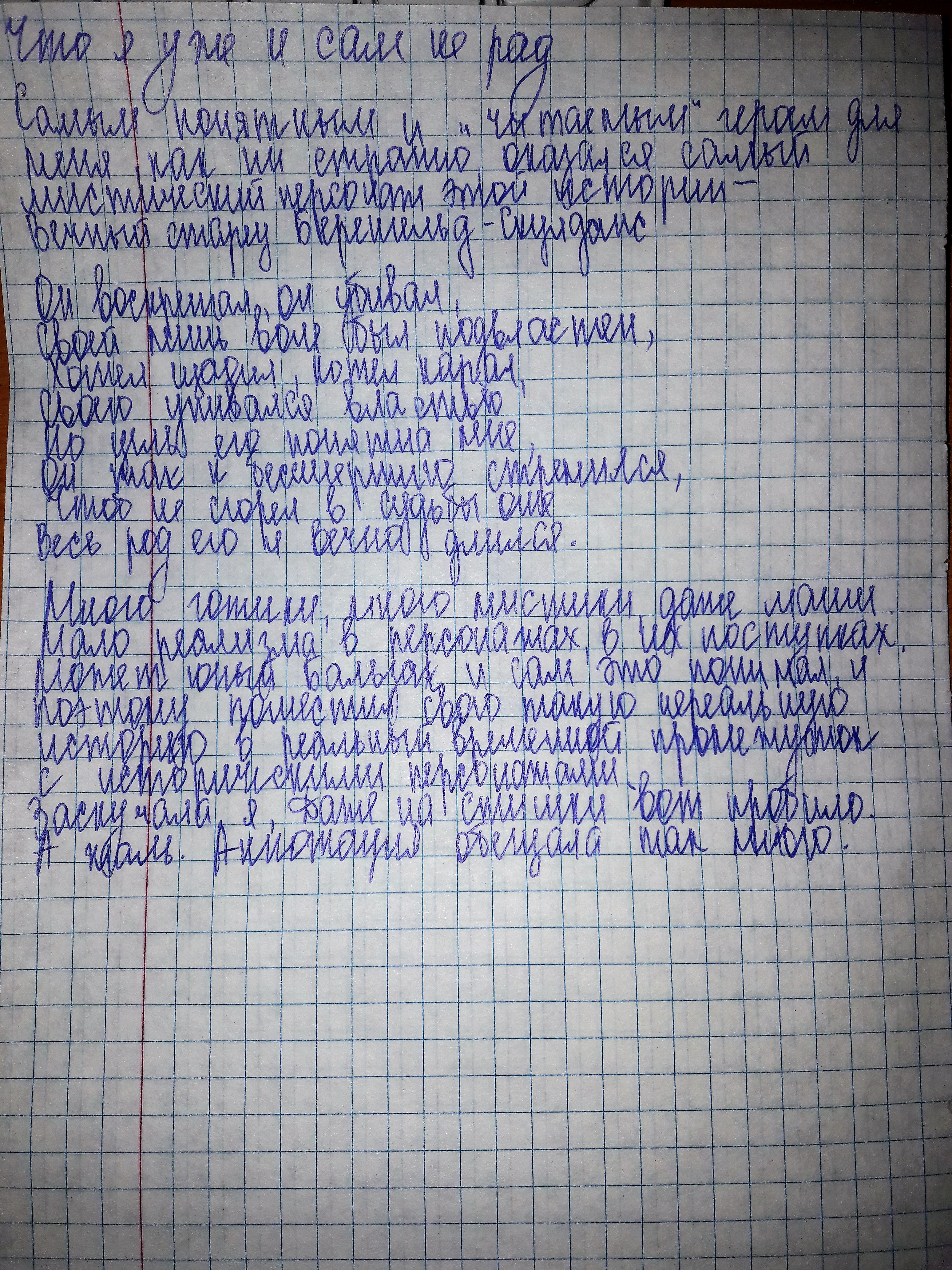 Что я уже и сам не рад...Самым понятным и "читаемым" героем для меня, как ни странно, оказался самый мистический персонаж этой истории - Вечный старец Беренгельд-Скулданс.