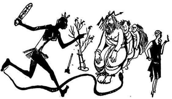 От главной героини повести-памфлета - чернокожей девушки с дубинкой народного гнева в руках достанется на орехи всем, кого она встретит в родных джунглях. Ветхозаветному создателю придется раствориться в небытие за жестокость и кровожадность. Потерпит фиаско рассудительный любитель споров - бог книги Иова. Не сможет заразить унынием Екклесиаст - знатный любитель запудрить мозги и потолковать о том, что жизнь земная бессмысленна и все есть суета. Падет жертвой эксперимента знаток собачьей слюны, в котором можно узнать Ивана Петровича Павлова. Не остановит поисков девушки и добрейший бог, вынужденный показывать фокусы с вином и оживлением, чтобы привлечь к себе внимание. И, конечно, не сумеет снискать ее расположения бог магометанской веры, разрешающий многожество.