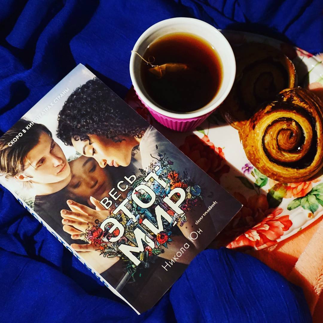 "Весь этот мир" - эта красивая, немного не реалистичная сказка о становлении личности, любви, риске и о разочаровании. Сказка, потому что слишком много совпадений, слишком, особенно в том, что касается любви Мэдди и Оливера. А ещё насчёт их общения. Как оно могло возникнуть, если Мэдди кроме мамы и Карлы ни с кем не общалась? Мэдди должна была заикаться, глупо шутить, выдавливать из себя глупые вопросы, а в конце убежать и расплакаться из-за этого. Но она так легко общается с Олли, шутит и вообще. Но если отключить в себе скептика и просто наслаждаться и верить, то можно получит удовольствие, сравнимое с любимой пироженкой.