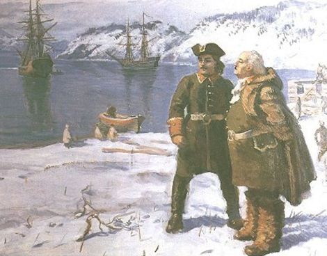 Дальше в дело вступает неприкрытая реклама так любимого большевиками Петра I. Любят они его за то, что он открыл дорогу к власти простым смертным. Но это все якобы. На самом деле такие любители Петра не хотят замечать тот факт, что именно Петр I открыл доступ к науке, руководству страной бездарным иностранцам. При рекламе Петра используется факт притягивания его имени к имени Лейбница. А Лейбниц, как известно, почти общепризнанное божество. Почти Ньютон. Вот Петр I, по легенде, возвращался из своих странствий по заграницам в Россию и встретился в Ганновере, ну чисто случайно же, с Лейбницем. Лейбниц служил библиотекарем при дворе ганноверского герцога. И очень попросил царя изучить те районы океана, ибо это важно. Он еще неоднократно будет напоминать Петру о своей просьбе направить экспедицию в район предполагаемого выхода к Америке. Именно Петр I должен был открыть Америку еще раз. Открыть не так, как её открыл Колумб — плывя с востока на запад, — а наоборот — плывя с запада на восток. Петр как бы соглашался с Лейбницем, но не сильно спешил стать заместителем Колумба. Тянул он время, прошло 11 лет, а экспедиции все не было. А потом, внезапно, Петр I решается на это важное дело. Ставку он делает ни в коем случае не на русского человека, а выбирает иностранца. Причем далеко не самого выдающегося. Словно целью Петра было неудачное окончание экспедиции. Из множества иностранных офицеров, принимавших участие в войне на стороне России (сегодня их бы назвали наемниками) Беринг оказался самым ненагражденным и обидчивым. «В 1721 году, при заключении мира, множество офицеров получило повышение в чинах. Но Беринга обошли — он так и остался капитаном. Это обидело его, и он подал в отставку. Видимо, он надеялся этим повлиять на начальство и добиться повышения. Но начальство почему-то было им недовольно — почему, мы не знаем. Расчёт не удался — отставка его была принята. Он подождал немного и подал прошение разрешить ему вернуться на родину, в Данию. Он опять рассчитывал, что его не отпустят и вернут на службу. И опять расчёт не удался — 10 марта 1724 года ему выдали заграничный паспорт.»