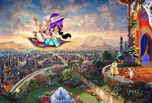 А какой красивый антураж! Восток, принцы и принцессы, арабские ночи, красивые сады и дворцы, джинн, ковер-самолет, ифрит... И вот сразу вспоминается один из моих любимых мультфильмов детства: диснеевский "Алладин".