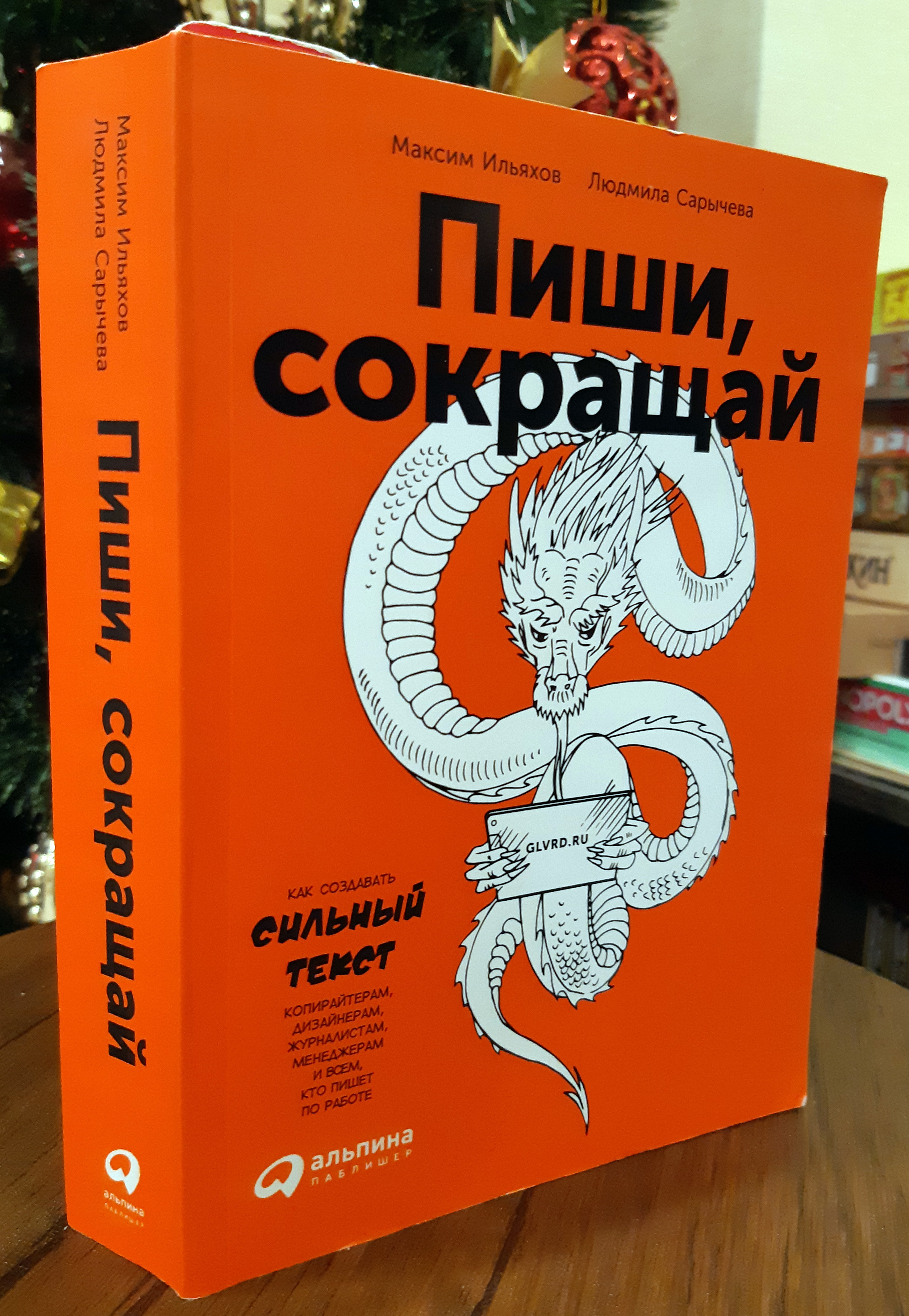 В поисках советов как лучше показать, как работать с раздражением и что нужно для грамотного текста, нашел книгу Максима Ильяхова и Людмилы Сарычевой "Пиши, сокращай". Пять лет назад, когда она вышла, привлекла моё внимание в книжном магазине яркой обложкой и картинкой в восточном стиле.
