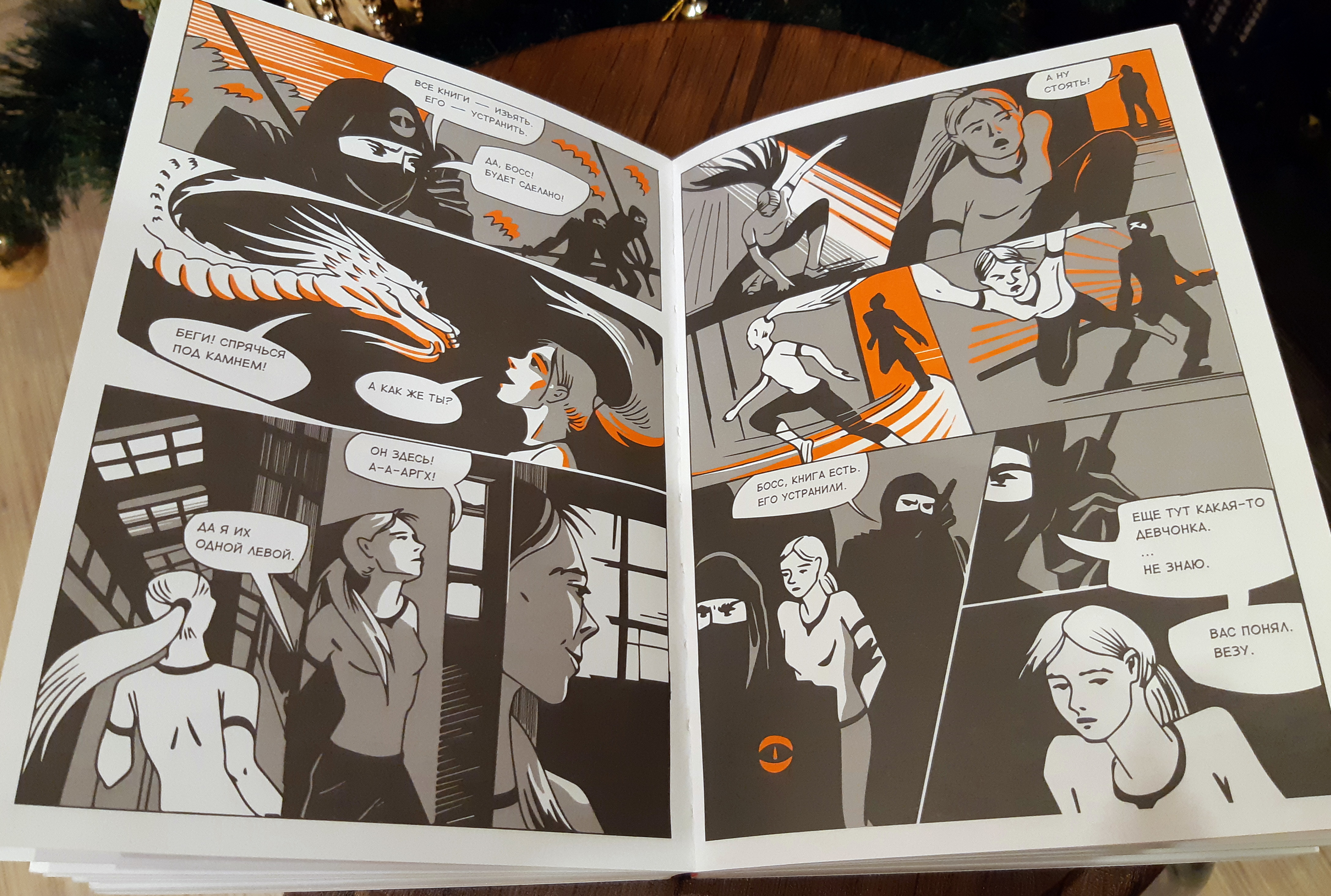 Стоит отметить оформление в виде комиксов. Этот милый дракончик на обложке сопровождает нас ещё и в самой книге7812