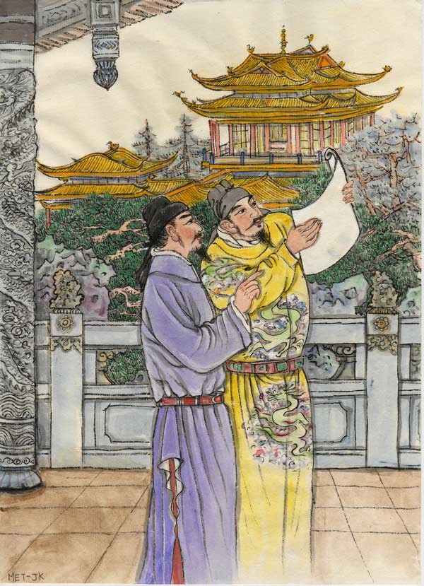 В разгар праздника девушка, делая вид, что подливает в чашу Ди вина, шепчет ему на ухо: «Я должна увидеться с вами наедине, ваша честь. В городе зреет опасный заговор!»