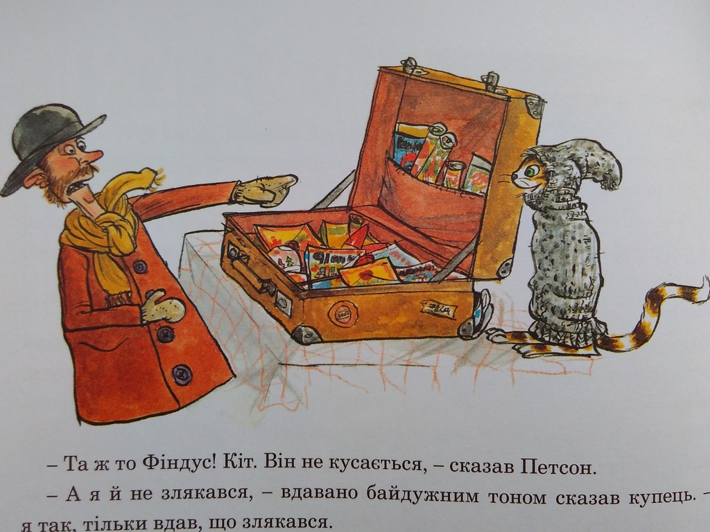 дітейкотів. Опустимо питання про те, наскільки Фіндус насправді слухняний :) Він пише список бажань, складає снігову башточку з кульок, словом, робить усе як слід. Петсонові нічого іншого не залишається, як самому змайструвати того різдвяного гнома, та ще й такого, щоб Фіндус йому повірив, адже старече серце слабке і не витримає гірких котячих сліз розчарування...Тож історія — хоч куди, з напруженням, несподіваними поворотами і магією, це ж Різдво. Але що мене завжди найбільше заворожує в книгах Нордквіста — це те, наскільки Фіндус на малюнках живий. От як справжній бешкетний кіт, простягни руку і почухаєш за вушком.