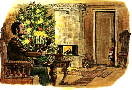 В этот раз у Нурдквиста вышла совершенно медитативная вещь, так мне показалось. На протяжении ста с лишним страниц Петсон пытается смастерить для Финдуса механического деда мороза к Рождеству. Время от времени происходят ещё какие-то события, но они никак не влияют на сюжет истории. По сути, это почти бессюжетная сказочная повесть, где читатели в очередной раз встречаются с уже полюбившимися персонажами.