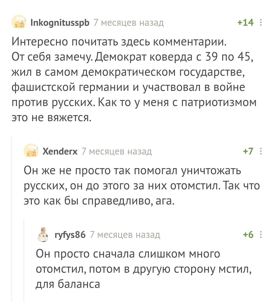 Зря Крылов-Харитонов так этих «Победителей» расхваливал. Не победят они (и вы) даже в далекой перспективе. Когда вместо привлечения сторонников торжествует принцип, «что хочу, то и ворочу» - это отталкивает даже готовых посочувствовать, так же как не растет число сторонников белого национального государства в стране денационализированных маргиналов. При таких-то подходах только и остается «литературно выражаться» и самоутверждаться в микроскопическом кружке своих поклонников, дискредитируя, как Чудинова, весьма серьезные и зрелые идеи. Даже в аду текущей реальности, познакомившись с неистовой глупостью реакционных утопий или невыполнимыми политическими программами, какой-нибудь «несогласный креативный хомячок» может счесть, что пусть лучше уж так, как есть.