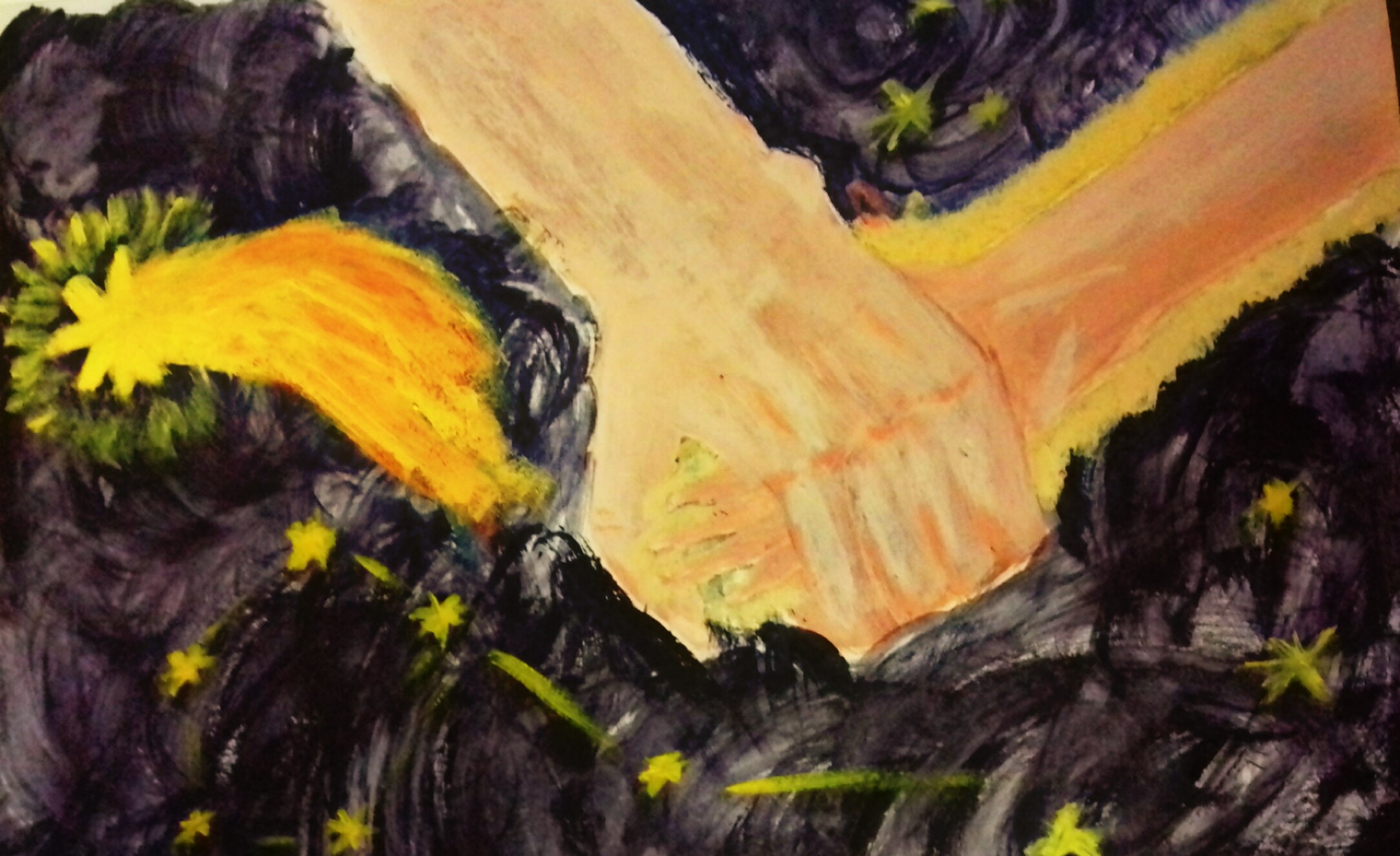 “I saw the painting in my mind: the lovely fawn, blooming spring vibrant behind her. Standing before Death, shadows and terrors lurking over his shoulder. Light and dark,the space between their bodies a blend of the two."