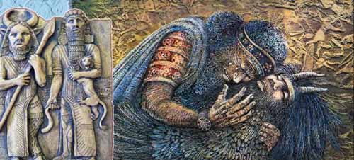 В ветвях Анзуд-птица птенца своего схватила, в горы полетела.