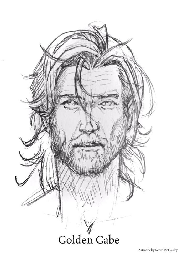 Габриель - мужик с двуручником - фронтмен/вокалист - некогда золотой рыцарь в сияющих доспехах (в роли позолоты на момент событий книги скорее выступает ржавчина).