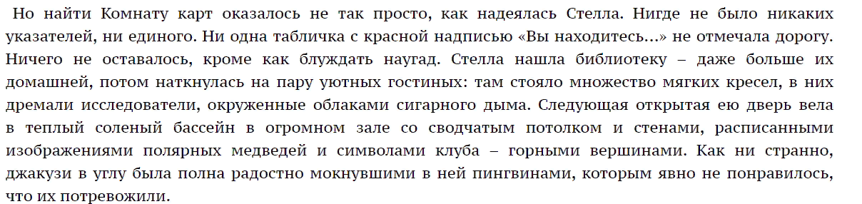 Путешествия ребят разнообразные и сказочные. На взрослую книгу они пожалуй не тянут. Но как чтение для детей книга мне показалась идеальной. Хотя поначалу долго не отпускало чувство дежавю - все казалось, что я читаю ремейк на "Золотой компас" Филипа Пулмана - маленькая девочка-героиня, экспедиции, север, животные-партнеры. Потом читать стало увлекательно, но чувство вторичности так и не прошло.21385