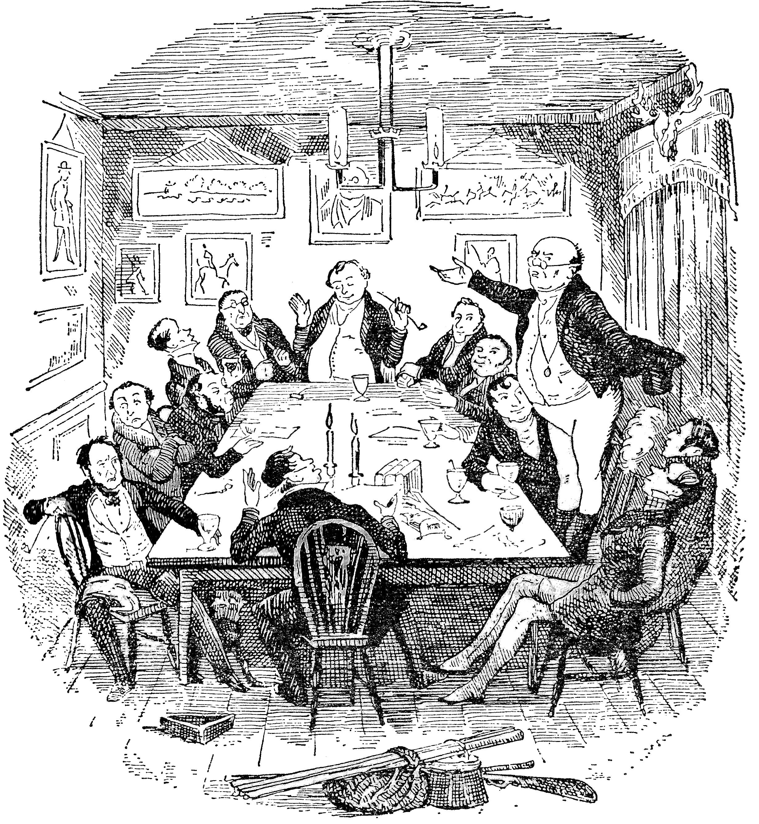 Ну так вот, заседает это собрание великих умов под предводительством почтенного сэра Пиквика, обсуждают дела глобального масштаба, и вдруг думают - а самим бы поглядеть на мир, все узнать, а потом выступить с докладом перед остальными благородными умами.