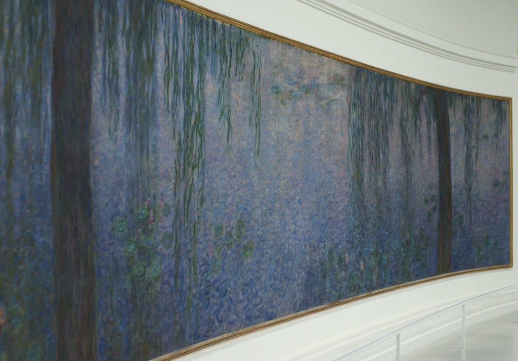 «…и как Моне отказывался до самой смерти расстаться с Grande Décoration , потому что считал, что лишь тогда сможет примириться с ее несовершенством.».В итоге архитектор был сменен, но и новые идеи не нравились Моне. Он даже отказывался от своего договора и продал некоторые работы. Но все же, в конечном итоге для серии был выбран Оранжереи, музей Оранжери, Le Musée de l’Orangerie, куда после смерти художника были перевезены полотна. Выставка открылась в мае 1927. На открытии присутствовал его сын Мишель, Бланш – его опора, его падчерица и одновременно сноха, и его давний друг – Клемансо.